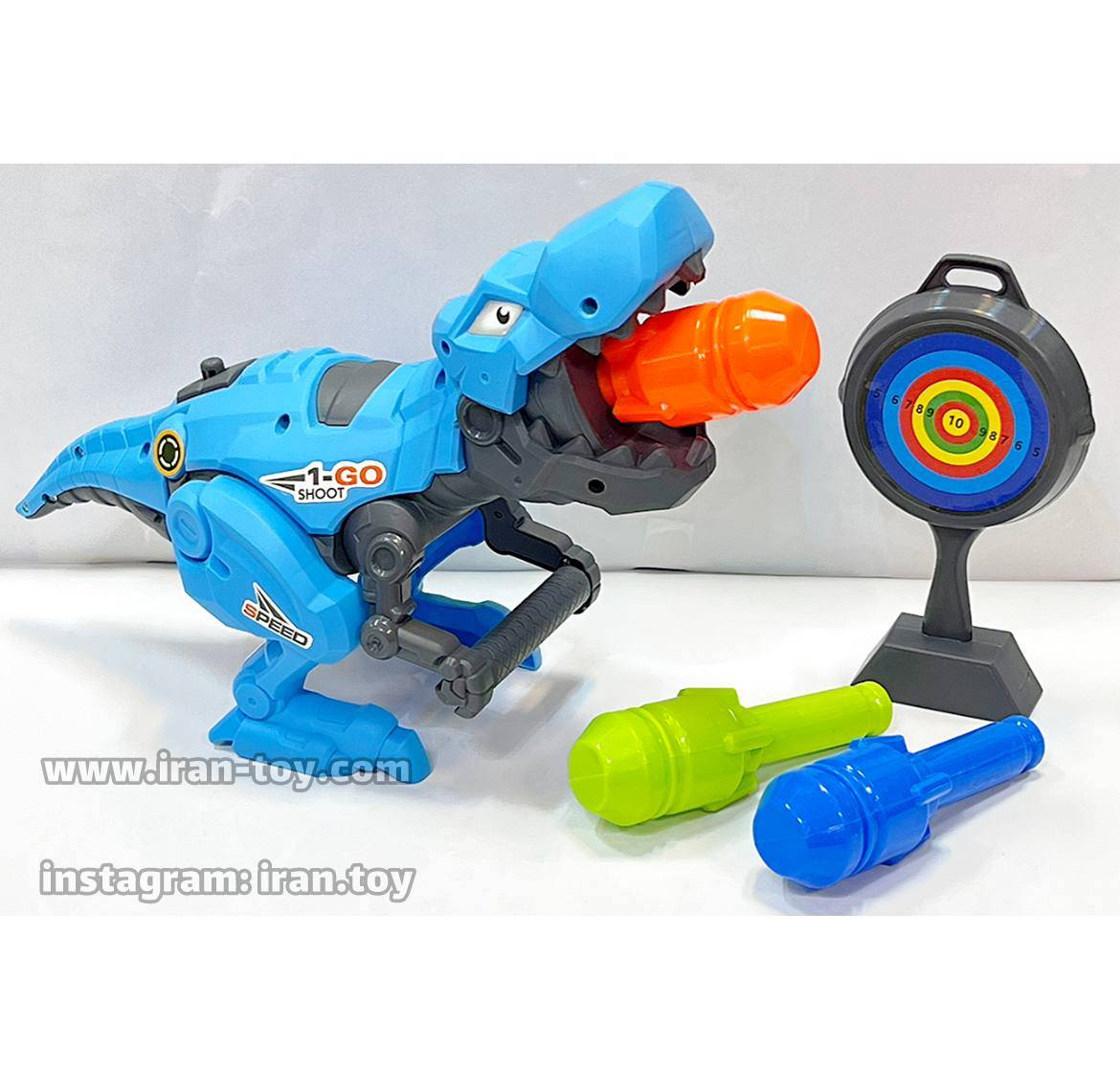 98- تفنگ دایناسوری این تفنگ با طراحی دایناسوری فوقالعاده جذاب، یک تجربه بازی متفاوت را به کودک شما هدیه میدهد. تفنگ هم به شکل فیگور دایناسور است و هم تیر چراغدار شلیک میکند!