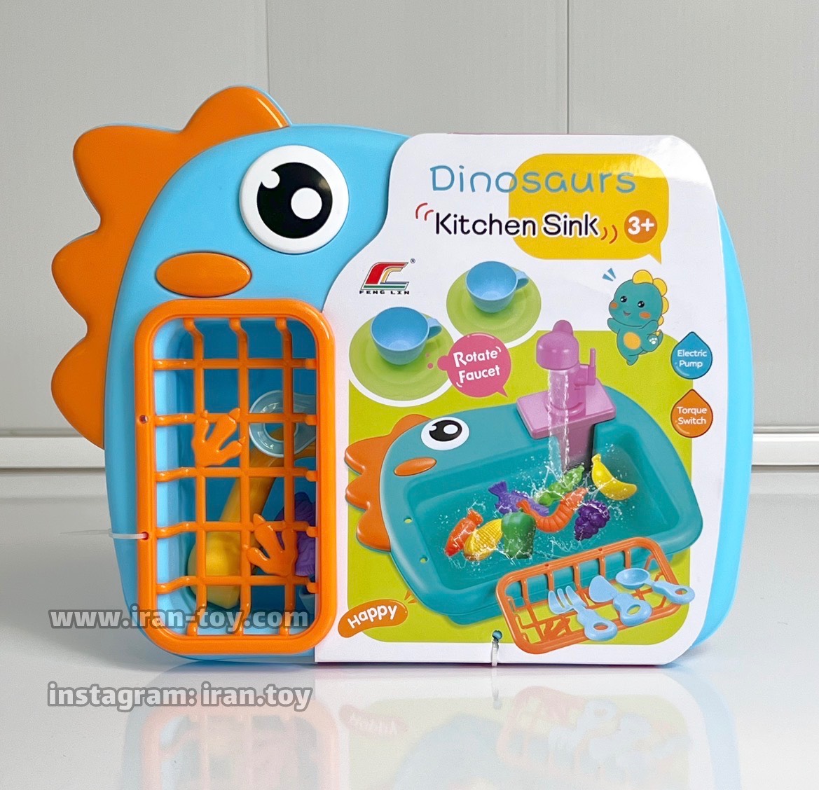 97- ترکیبی از بازی، آموزش و هیجان برای کودکان سینک ظرفشویی دایناسور آبی، یک اسباببازی آموزشی و سرگرمکننده برای کودکان است که تجربه ی شستوشوی واقعی را برای آنها فراهم میکند. این سینک وارداتی با کیفیت ساخت بالا طراحی شده و بههمراه میوهها، سبد و لوازم آشپزی متنوع عرضه میشود تا کودک بتواند ساعتها بازی خلاقانه و نقشآفرینی جذاب را تجربه کند.
