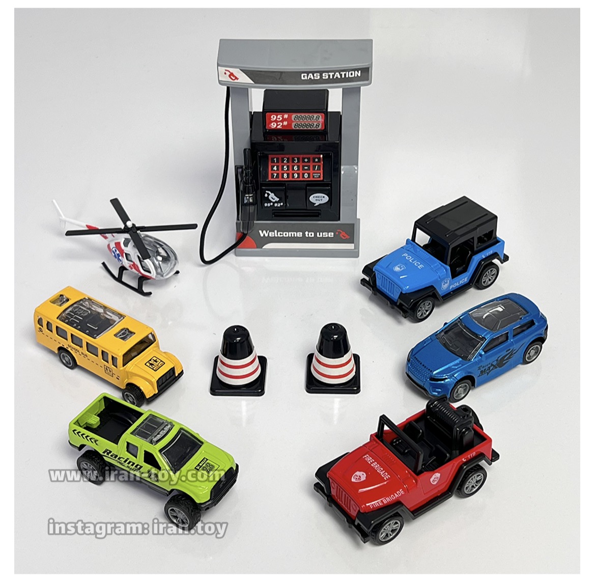 • مجموعه ماشین های شهری و پمپ بنزین فلزی عقب‌کش اسباب‌بازی یک انتخاب عالی برای کودکانی است که به ماشین‌بازی و بازی‌های هیجان‌انگیز علاقه دارند. این مجموعه شامل ۵ عدد ماشین شهری و ۱ عدد هلی‌کوپتر فلزی عقب‌کش به همراه پمپ بنزین اسباب‌بازی است که فضای بازی را واقعی‌تر و جذاب‌تر می‌کند و کودک را به بازی فعال تشویق می‌کند.