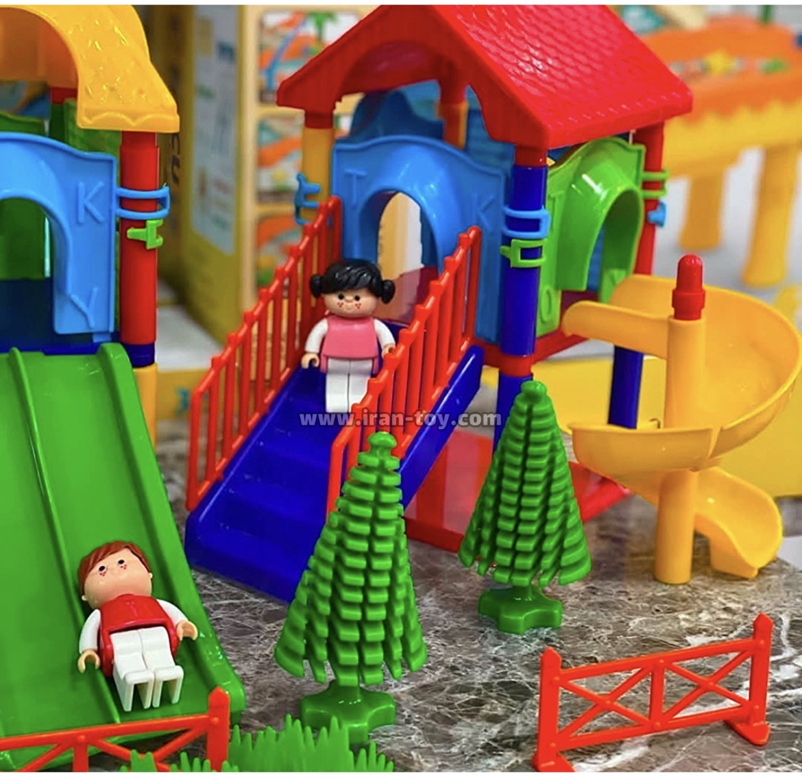 • پارک شادی ۵۸ قطعه تک توی بازی جذاب و سرگرم‌کننده‌ست که بچه‌ها می‌توانند بسازند و باهاش ساعت‌ها بازی کنند.