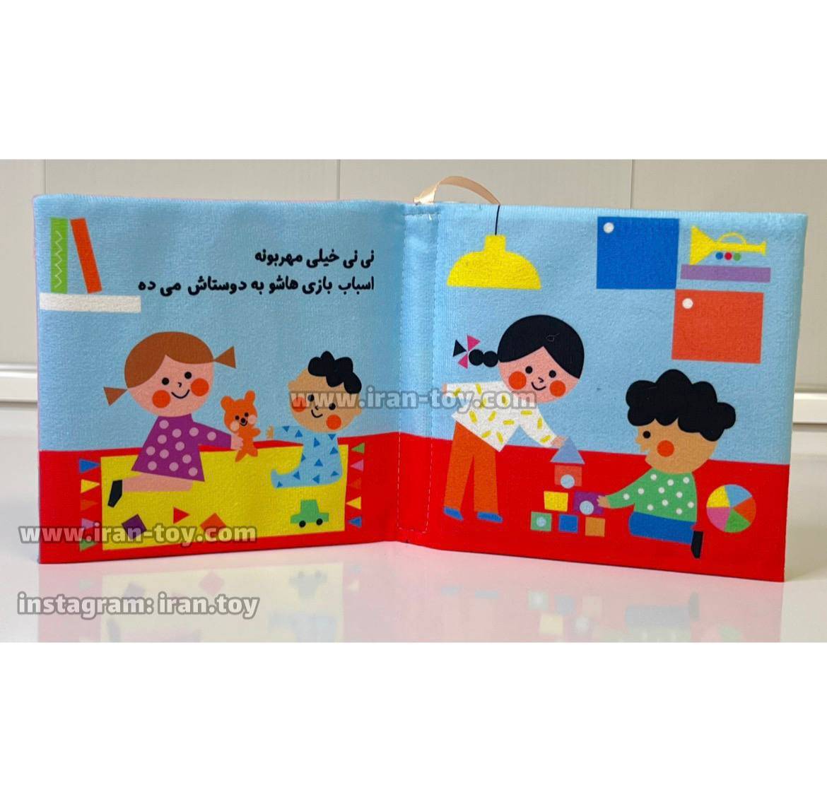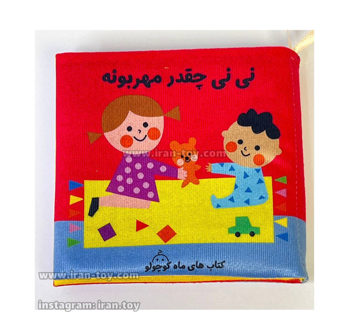 100- کتاب پارچه ای نی نی چقدر مهربونه یک اسباب بازی و سرگرمی آموزشی فوق العاده مهربان و ایمن برای نوزادان از بدو تولد است. این کتاب از پارچهای نرم، لطیف و ضد حساسیت ساخته شده و کاملاً قابل شستشو می باشد، بنابراین والدین می توانند با خیال راحت آن را در اختیار کودک قرار دهند
