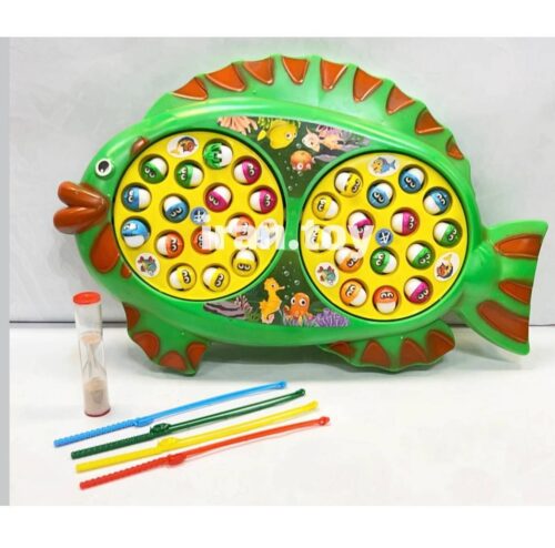28- برای شروع مسابقه اسباب بازی ماهیگیری را روشن کنید تا صفحه رنگی شروع به چرخیدن کند و ماهی های رنگی دهانشان باز و بسته شود. کودک با استفاده از قلاب ها مثل یک ماهیگیر حرفه ای، قلاب را در دهان ماهی باید قرار دهد و به محض بسته شدن دهن ماهی ها آن را به بیرون بکشد. هر شرکت کنده ای که که در انتها ماهی بیشتری صید کرده باشد برنده این مسابقه است. این اسباب بازی از جنس پلاستیک مرغوب بوده و به دلیل داشتن شاد و رنگارنگ توجه کودک شما را به خود جذب می کند. در حین بازی موزیک زیبایی پخش می شود که لحظات بازی کودک را لذت بخش تر می کند.